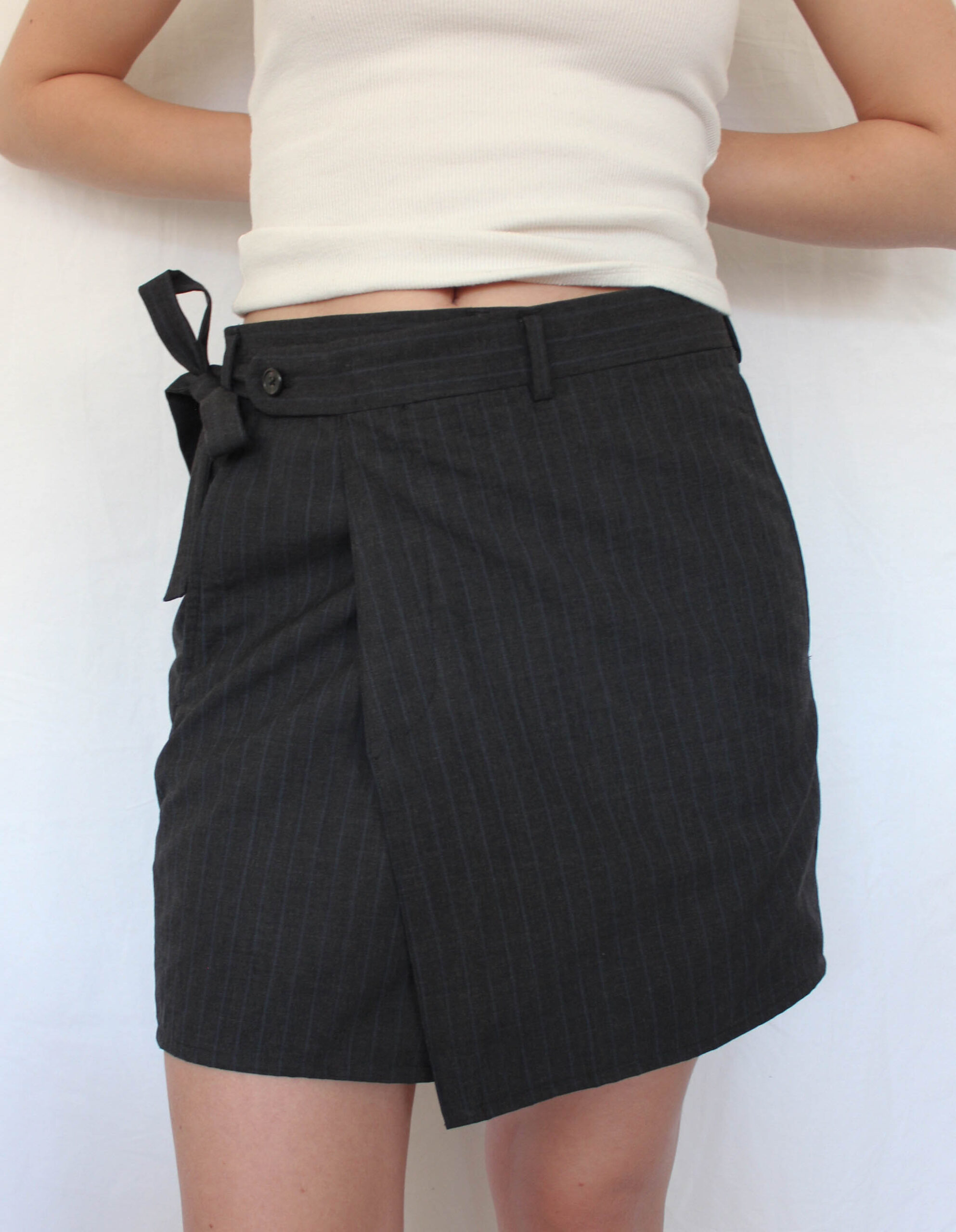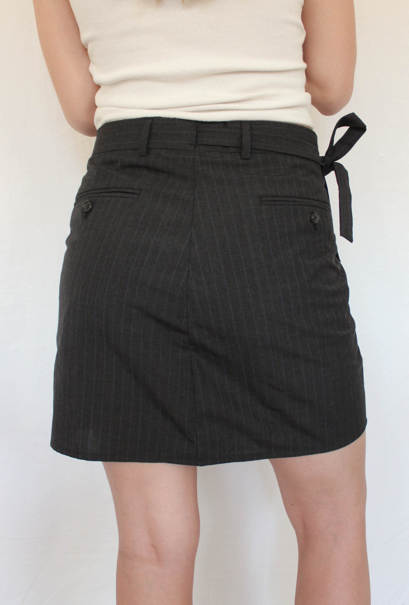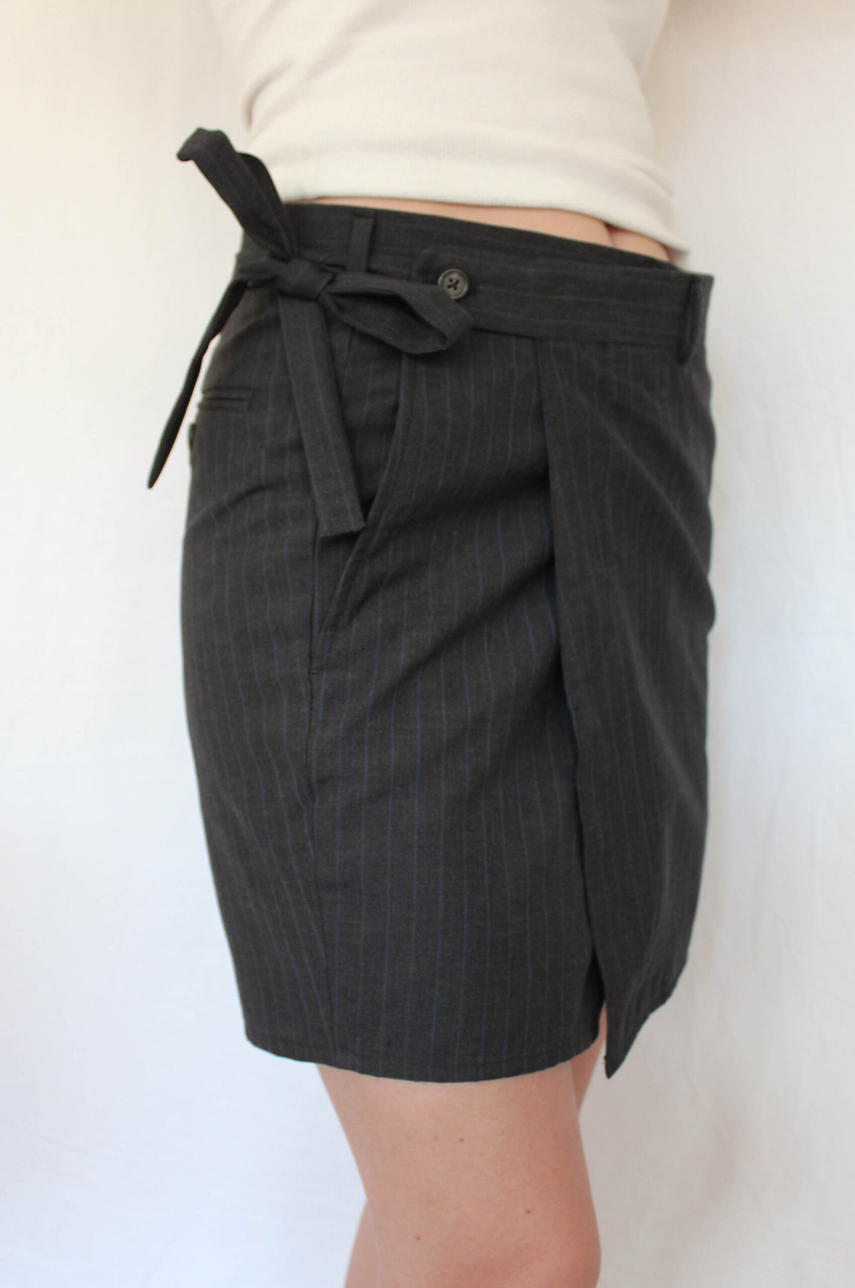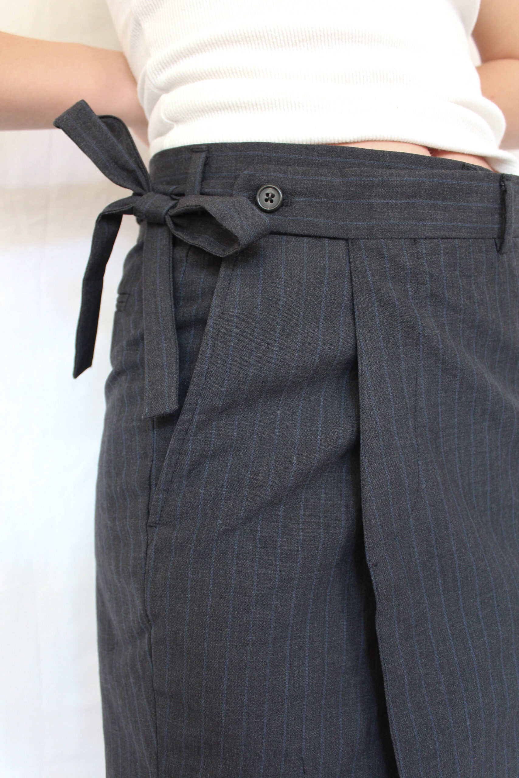 Upcycled from mens suitpants, given a new feminine look.