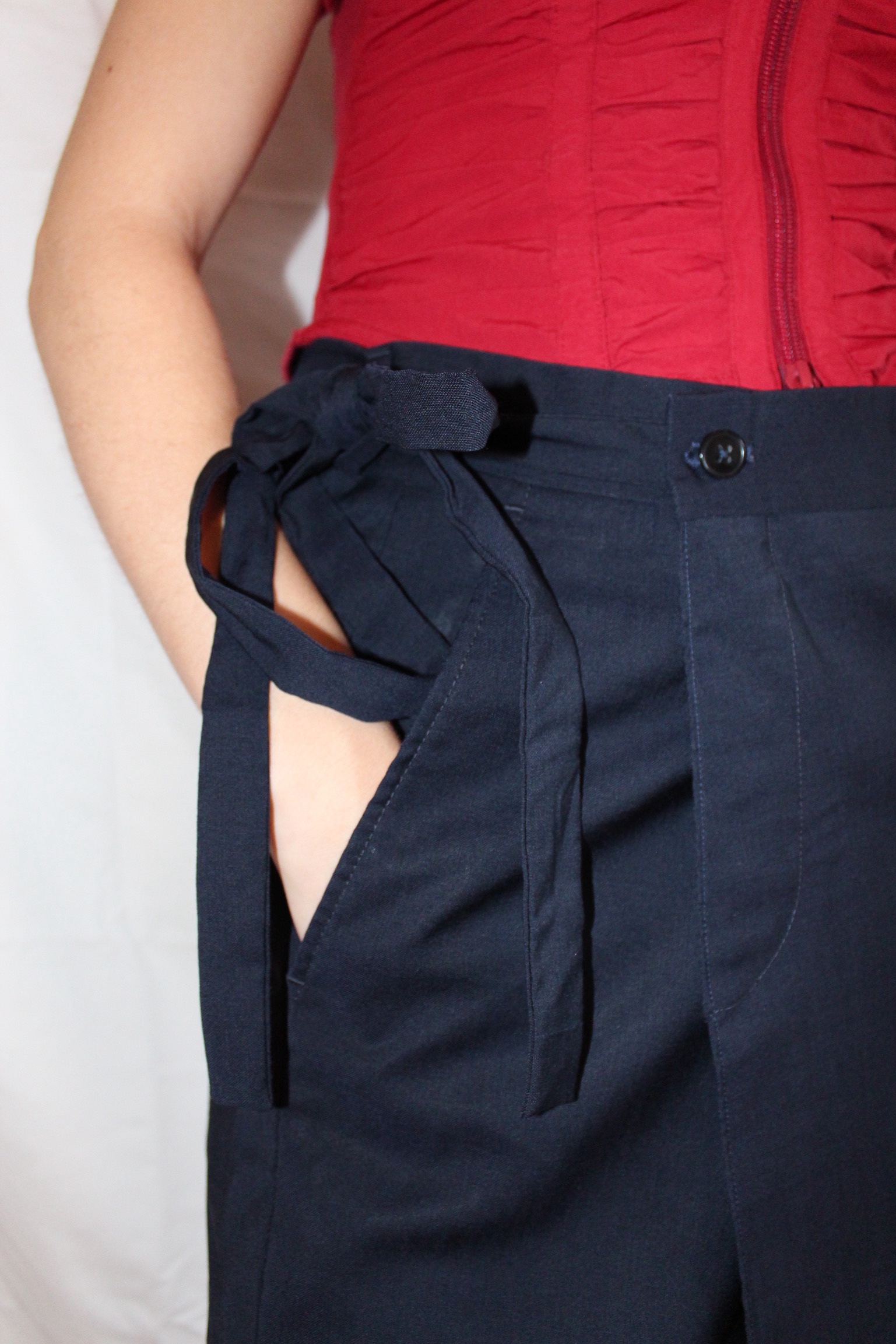 Upcycled from mens suitpants, given a new feminine look.